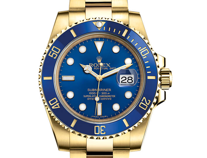 Submariner Date Or Jaune Réf. : 116618LB Boîtier : or jaune Taille : 40mm Bracelet : Oyster en or jaune Mouvement : automatique Prix Rolex 2017 : 31 300,00 €